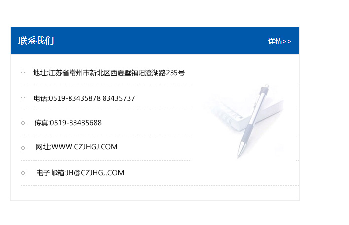 傳真:0519-83435688    郵編:213135    網址:WWW.czjhgj_com.gzstj.com    電子郵箱:JH@czjhgj_com.gzstj.com